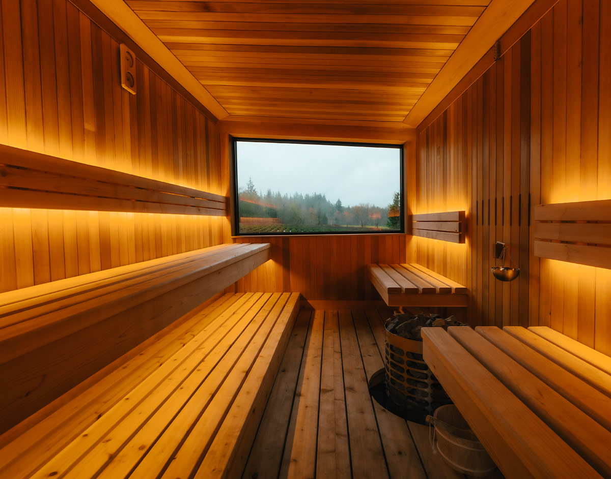 Luxurious Sauna: Immerse yourself in soothing lavender heat, elevating relaxation and recovery to a luxurious new level.